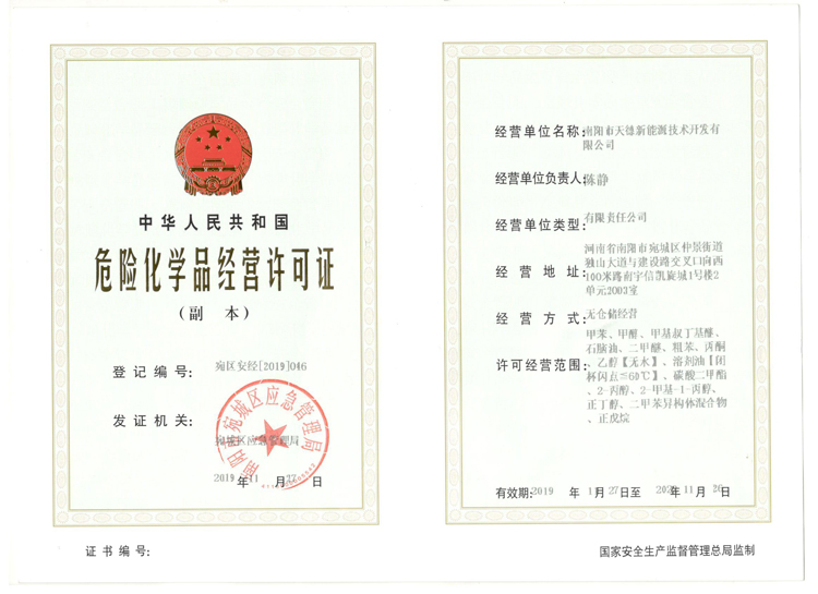• 天德危險品許可證